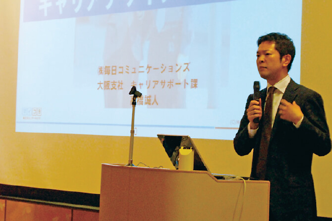 就職活動を目前に控えた時期、さまざまな企業の人事担当者を招き、これから求められる人材像や試験内容など就職に役立つ話が聞ける講演会を開催します。