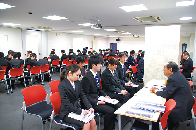 企業の採用担当者が、OICの学生のために学内で企業説明会や採用試験を行うイベント。年間に大手を含む約100社もの企業が来校し、企業説明会や採用試験を実施。就職内定に直結する絶好のチャンスです!