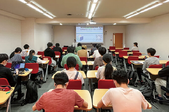 卒業前年度の夏期期間直前にゲーム会社を招いて、ゲーム業界に就職するために重要なポートフォリオ制作の準備セミナーを実施。採用担当者の注目ポイントなどを知り、夏のゲーム制作に活かします。