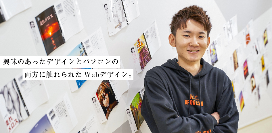 Webデザインの授業が好きでした。OICに入学した理由はデザインにもパソコンにも興味があり、それが両方学べるのがWebデザインだと思ったからです。入学時は何も知らない状態でした。それでも独力でWebサイトがつくれるようになりましたので、そこは成長できたポイントです。印象に残っている授業は、企業サイトをつくる課題です。架空の企業を設定し、自分でコンセプトを決めて、素材集めからデザイン、 HTMLまですべてをつくります。身につけてきたこと全部が試されているようで、とてもやりがいがありました。OICのよさは幅広い体験ができること。Webだけを勉強するのではなく、イラストを描いたり、デザインソフトを使ってグラフィックデザインに触れたり、他コースのジャンルも学ぶことができ、知識が広がりました。クラスの皆とも仲が良く、楽しく学べた学校生活でした。