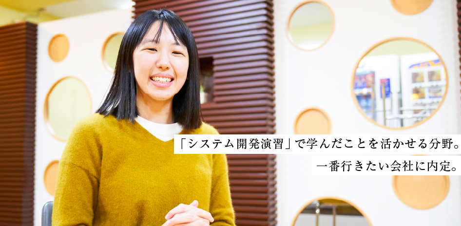 物流に関連するシステム開発を行う企業です。物流を支えるためのさまざまな開発を手掛けていますが、その中に在庫の管理システムがあります。管理システムについては「システム開発演習」で開発に取り組んだことがあり、その経験がじかに活かせるのではないかと思い、内定先に興味を持ちました。会社訪問にうかがった際、いい意味でオフィスらしい雰囲気ではありませんでした。社員の皆さんがとても和気藹々とされていて、私に対しても「いらっしゃい」と笑顔で迎えてくださり、この会社なら気持ちよく働けると実感しました。複数社受けましたが、一番行きたいと思った会社から内定をいただくことができました。
