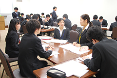 初日22日は、各教室に分かれ、グループ演習を行いました。初対面の学生同士ということもあり、まずお互いを知るための演習を行い緊張感をほぐしながら、実際の就活でも採用されているグループディスカッション、グループワークに取り組みました。