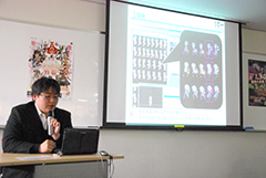 塚本氏は選考時に評価が高かったプログラムとデザインの両方のポートフォリオを実際に学生に見せながら、評価するポイントを分かりやすく説明して くださいました。その時お見せ頂いたゲームプログラマ志望の学生のポートフォリオは、本校の卒業生であり、藤元 辰弥さんのものでした。