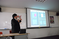 作品を持参した学生は塚本氏に現段階の作品を簡単に紹介し、それに基づき、プログラムの書き方や、企画書の書き方など、具体的にご指導頂きました。現場で活躍するプロからの直接指導とあって、学生は緊張しながらも、真剣に塚本氏の話に耳を傾け、メモを取っていました。