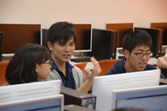講演会を聞いて、ランチを食べたら、午後からは学校紹介、学科・コース説明のあとに、ゲーム分野に特化した体験実習を行いました。TALK LIVEで高められた意識がメラメラと燃えていて、実習教室の空気は真剣そのもの。学生スタッフの丁寧なサポートもうけながら、ゲームクリエイターになるための技術を体験していました。