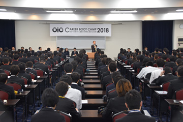 次年度2017年度に卒業予定の学生を対象とした就職活動のスタート準備として、今年も1泊2日の就職合宿「OIC Career Boot Camp 2018」を開催しました。開催8回目を迎えるこの合宿は、これから始まる就職活動と、その先にある社会人生活に向けた「心身の準備」を行う内容で組まれており、OICの就職支援を代表する恒例行事となっています。その様子を紹介します。