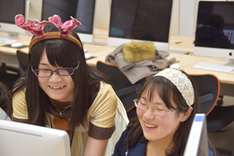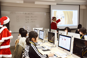 今回の体験実習は、クリスマスにちなんで担当してくれるプロ講師や学生スタッフもサンタ姿に変身♪どの講座も和気あいあいとアットホームな空間で、コンピュータ分野のモノづくりを体験していました。