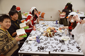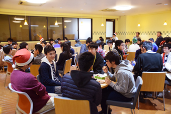 おいしいディッシュを囲めば、自然と会話も弾みます♪1人で参加していた高校生も、同じテーブルの高校生とすっかり仲良しに。学生スタッフも加わり、大好きなゲーム・アニメ・マンガの話から、今の進路の話まで、様々な話をして盛り上がりました。