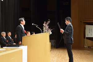 新入生代表のメディアクリエイト学科・CGクリエイター専攻の直原渉太さんは、クリエイターの「世界観」を映像として表現し、多くの人の記憶にいつまでも残るような作品をつくるために、しっかりとした技術を身に付けますと力強く宣誓しました。