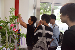 飾られた笹の葉には、学生たちが願いを込めて書いたたくさんの短冊がゆられて、とても涼しげな雰囲気になっています。