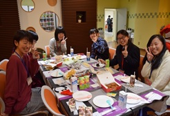 今年もケーキとチキンとお菓子を用意してディッシュタイムをとりました。友達同士で参加している高校生も、1人で参加している高校生も、皆さん初対面の高校生と一緒のテーブルに座ってもらいました。はじめは緊張していた学生も、本校在校生と最後は盛り上がっていましたね。