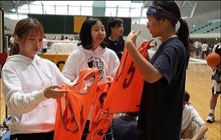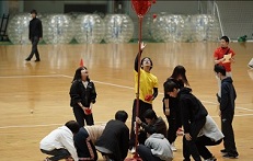 続いては、意外にも夢中になってしまう玉入れ。100玉を一番早く入れたチームが優勝!