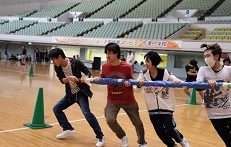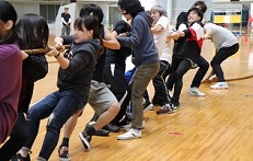 どこまで連続跳びを伸ばせるか?大縄跳び。力の限り引く綱引き!