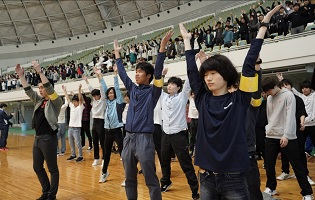 まずは開会宣言、選手宣誓、そしてラジオ体操第一。普段はほとんど運動していないと思われるOICの学生たちです。