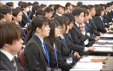 参加者全員がリクルートスーツを身にまとい、これから始まる合宿に向けて不安と緊張を感じながら開会式が行われました。